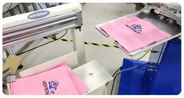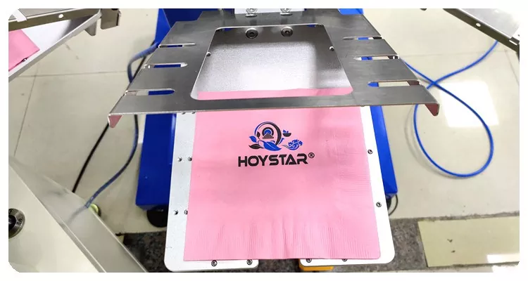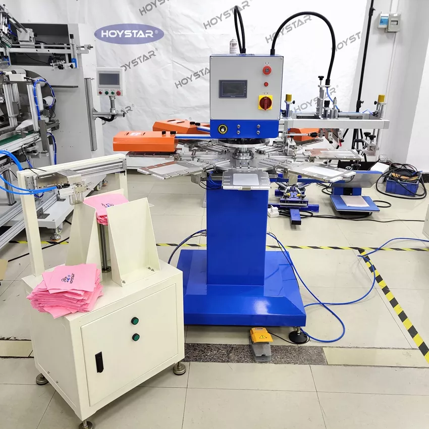 HOYSTAR, Çin'de güvenilir bir üretici ve tedarikçidir; Bu HOYSTAR Otomatik 2 Renkli Peçete Serigrafi Baskı Makinesi, özellikle peçetelere tam otomatik baskı için tasarlanmıştır. Kolaylaştırılmış baskı süreci şu şekilde gerçekleşir: Peçeteleri makineye manuel olarak yükleyin - ilk rengin otomatik olarak yazdırılması - otomatik kurutma - ikinci rengin otomatik olarak yazdırılması - otomatik kurutma - otomatik boşaltma - ve otomatik ürün toplama.