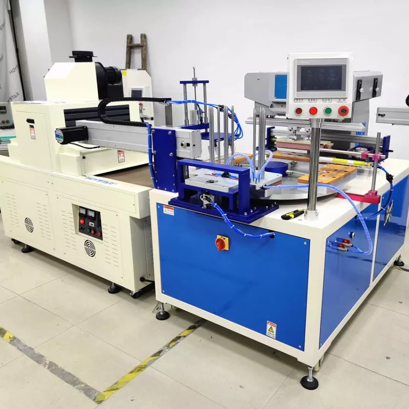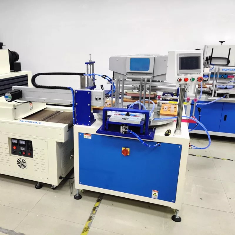Çin'de profesyonel bir üretici olarak HOYSTAR, cetveller, eşkenar üçgen cetveller, Delta cetveller, açıölçerler ve benzeri ürünler gibi kırtasiye öğelerini basmak için tasarlanmış Otomatik Kırtasiye Cetvel Serigrafi Baskı Makinesi tedarik etmektedir. Makine, yüksek hızlarda sorunsuz çalışacak şekilde tasarlanmış yüksek hızlı bir döner çalışma tezgahına sahiptir. Otomatik besleme ve boşaltma sistemi ile sürekli üretime olanak sağlar. Saatte 2.000 parçaya kadar maksimum baskı kapasitesiyle verimliliği önemli ölçüde maksimuma çıkarabilir.